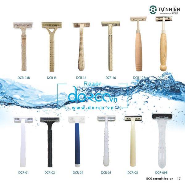 Thay thế dao cạo nhựa thông thường bằng các mẫu dao cạo cán gỗ hoặc cán tre composite giúp nâng tầm bộ Amenities.